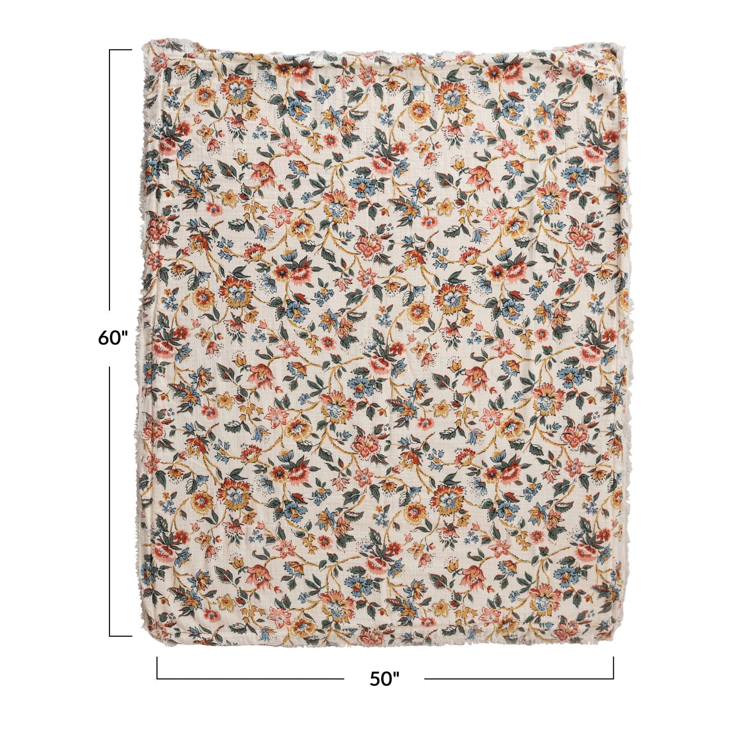 Woven Cotton Printed Throw w/ Sherpa Back, Flower Pattern & Fringe